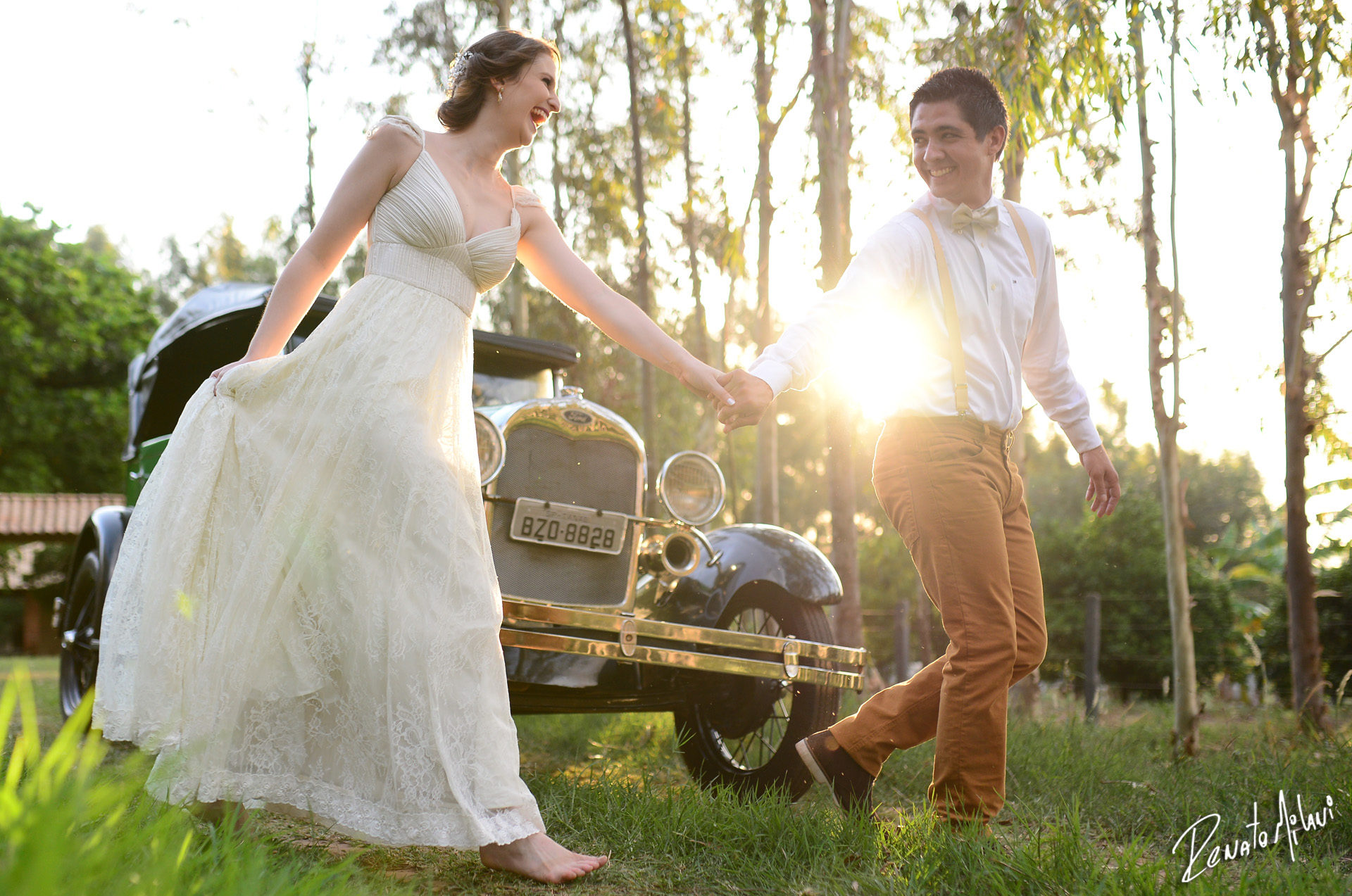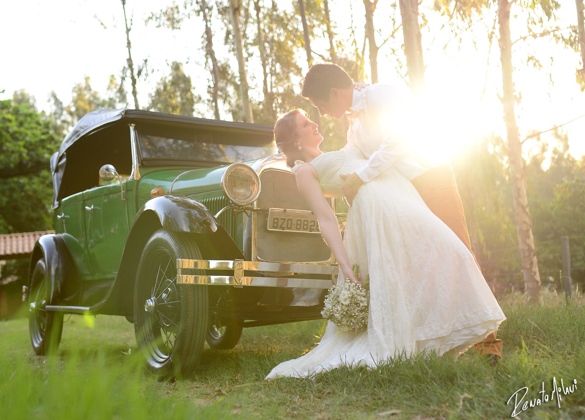 Durante o ensaio pré weeding de Gabriel e Felipe, o tia dela trouxe para nós um FORD 1800 e bolinha para fazermos lindas fotos com o casal.